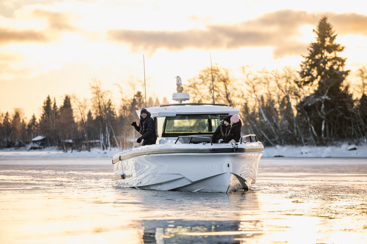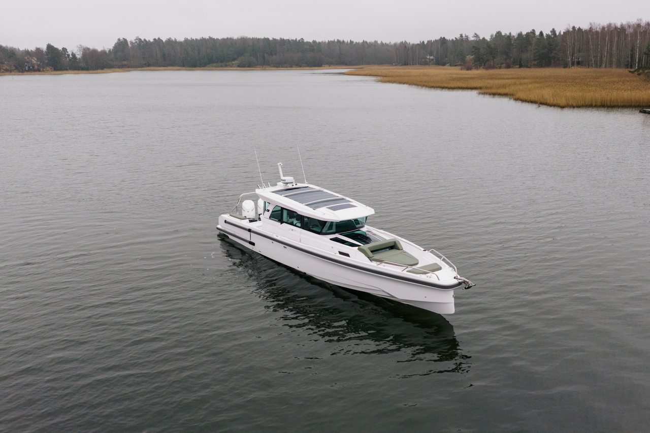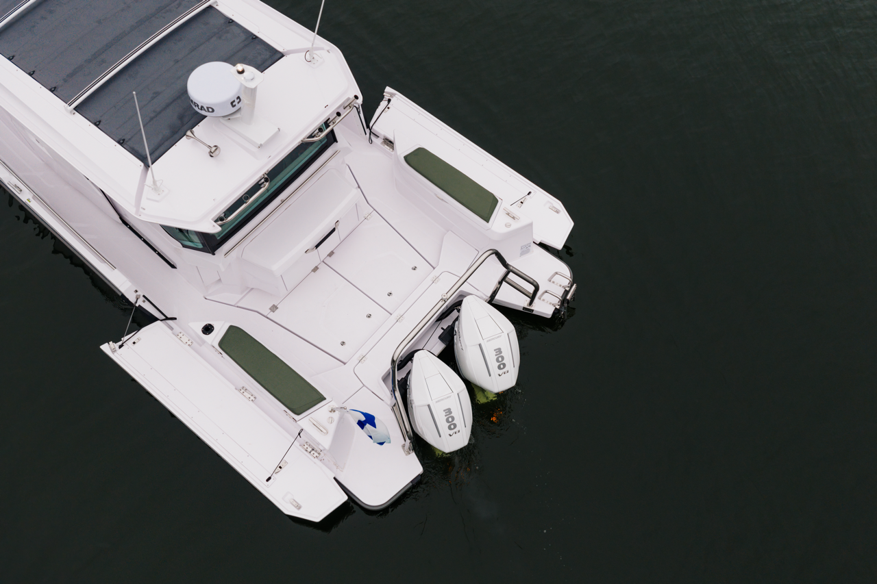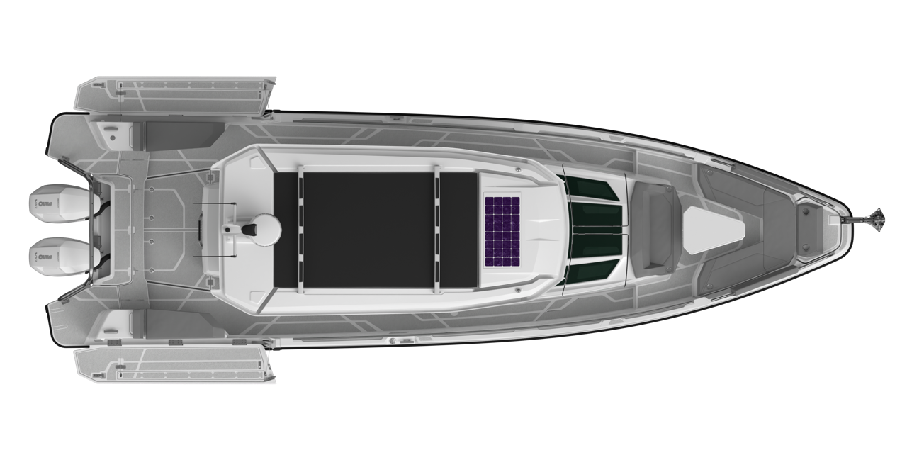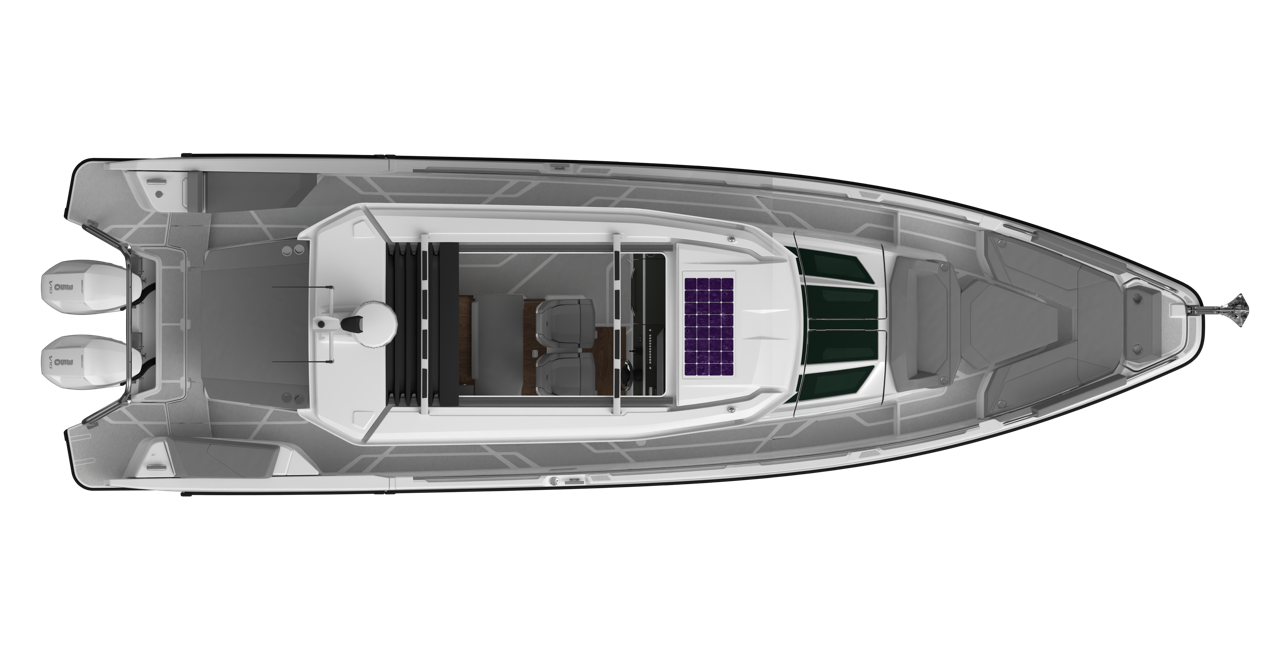 Zaprta krmarska kabina ostaja osrednji del plovila, saj nudi zaščito v zahtevnih razmerah, hkrati pa velika panoramska okna in drsna vrata ohranjajo močno povezanost z morjem. Optimiziran trup z dvojnim korakom zagotavlja hitro, stabilno in predvidljivo plovbo, primerno tako za daljše prehode kot za zahtevnejše vremenske pogoje.